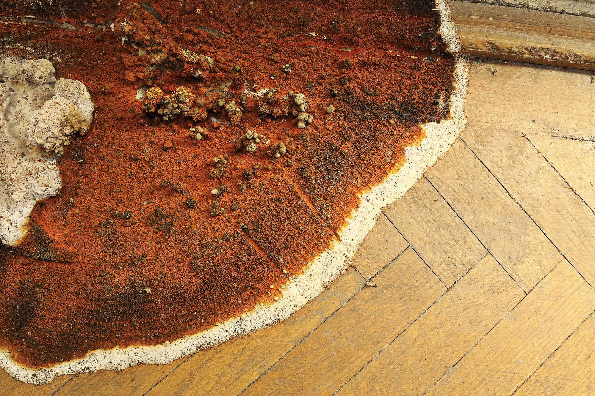 La mérule est un champignon sournois, dont l’apparence varie selon évolue en fonction de son stade de développement et des conditions de son environnement. Bien qu’elle commence sous forme d’un voile blanc discret, elle évolue rapidement en une masse épaisse, filamenteuse et colorée, tout en libérant des spores brun-orangé caractéristiques (photo de la mérule ci-dessous). Ses dégâts sur le bois sont souvent irréversibles et peuvent fragiliser toute une structure.